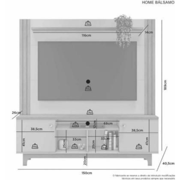 1,89 m de altura 1,50 m de largura 0,40 m de profundidade